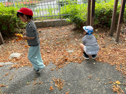 どんぐりや落ち葉を使って、遊びを考えて楽しむ姿もみられました。