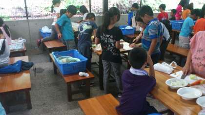 野外炊飯が始まっています。