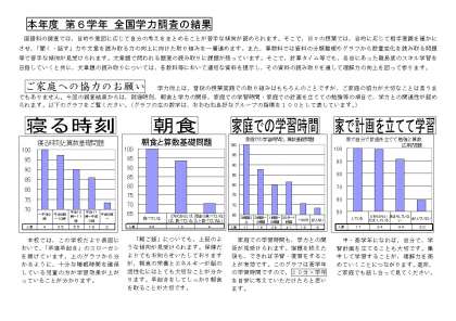 6年生が4月下旬に実施した全国学力調査の結果が届きました。