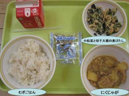 二つのおかずとむぎごはんをきれいに食べてくれていました。