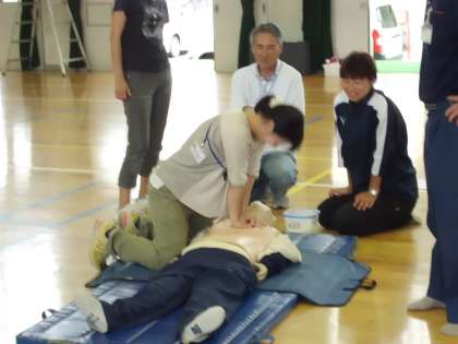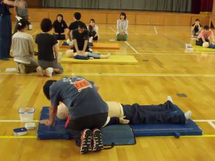 7月4日(木)に教職員対象の救命救急法の研修を本校の体育館で行いました。
