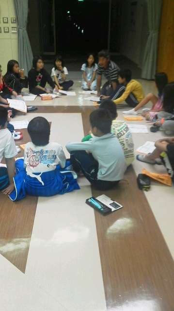 ナイトウォークも終わり、リーダーを中心に夜の集いで一日を振り返ります。
