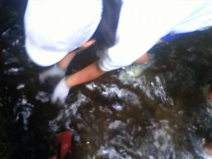 3日目の午前の活動「イワナつかみ」が始まりました。