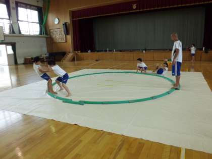 部活動すもう部が体育館で練習を行っていました。