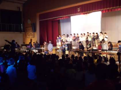 今年度から午後も学習発表会を行っています。4年生2・3組の劇「アイウエオリババと40人の盗賊」,そして,最後は6年生2組の映像・音楽「心,重ねて」でした。