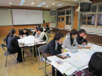 授業終了後,授業の進め方などのふりかえりをし,今後につなげていくように話し合いをもちました。