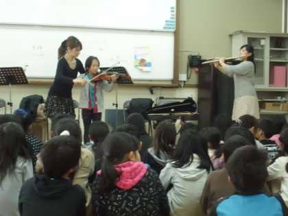 フルートやバイオリンの美しい音色に子どもたちから感嘆の声があがりました。