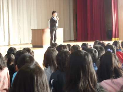 今年最初の朝会が行われました。元気な顔が体育館に集まりました。