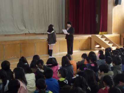 今日は最後の朝会です。校長先生から「立つ鳥跡を濁さず」という話がありました。