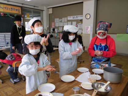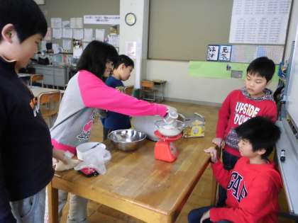 3月生まれのお友達のお誕生会をしました。今回は,はかりの学習で量ったお米・もち米・小豆・きな粉などを使っておはぎ作りをしました。自分たちで作ったきな粉をまぶして,とってもおいしいおはぎができました。
