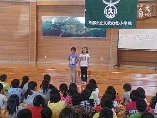 司会者の進行で、校歌とともに校旗を揚げ、みんなで心を一つにして誓いの言葉を言いました。