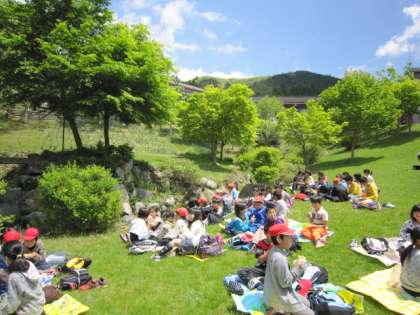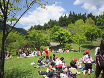 緑に囲まれ,とても気持ちのいい中の食事です。