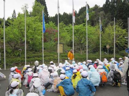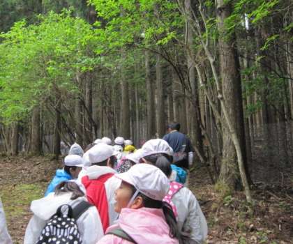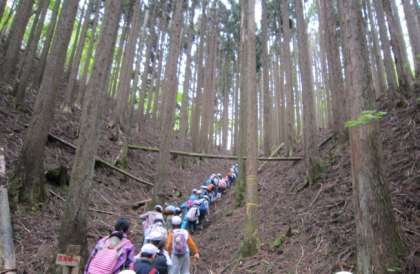 雨が気になることもありレインコートを着用していますが,山の中に入ると大きな木々が傘となって,雨にあたることはありませんでした。