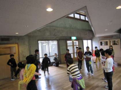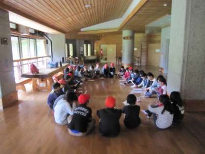 3日目のキャンプファイヤーにむけて,クラスの出し物の練習をしています。