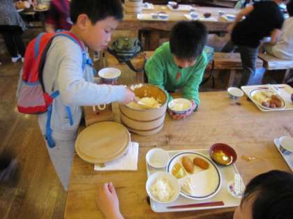 夕食の時間を待っていた子どもたちです。