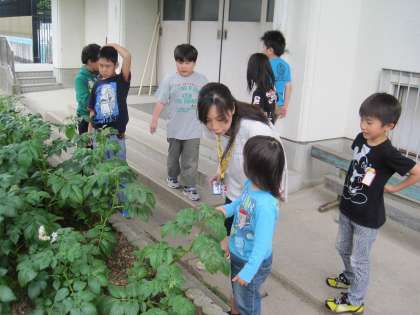 久しぶりに花壇へ行き,野菜の生長を見ました。