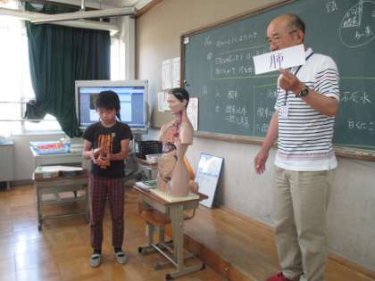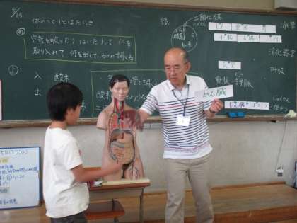 授業が終わってからも6年生は人体のしくみに興味津々。