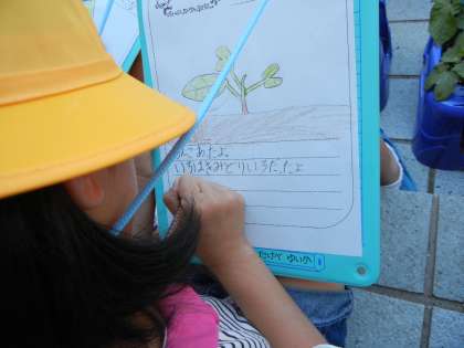 この暑さの中も,あさがおは元気に育っています。