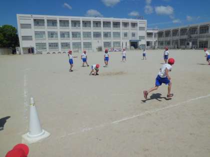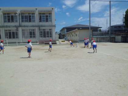 独自のルールとして,攻撃の時,スリーアウトはなく全員が打つまでチェンジにならないや,走者が3塁までいくと得点になります。守備では,ボールを捕れなくてもさわればアウトになるなどがあります。これで失敗を気にせずに全員が参加しやすくなりました。