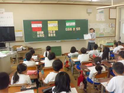 後半は赤・黄・緑の食べ物の名前とそのはたらきについて教えていただきました。難しかったですが,自分たちで色分けできたようです。これからも意識して食べてね。