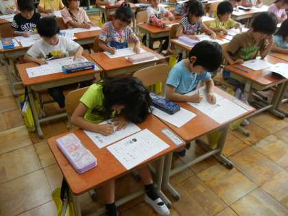 みんな真剣な表情で,いい姿勢で,全員が書き終わるまで待っていました。