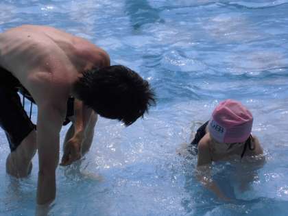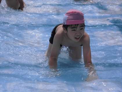 ワニさん歩きをしていると楽しい声がプール中から聞こ