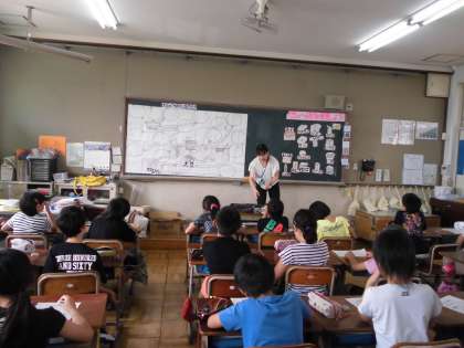 栄養教諭の神殿先生に来ていただき,3年生の時に国語でも学習した「大豆の変身」について学習しました。