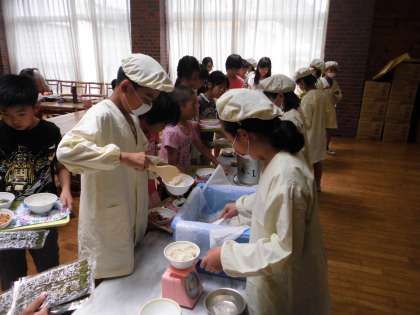 給食準備なども4年生がします。さあ,次は何年何組といっしょに食べるのかな??
