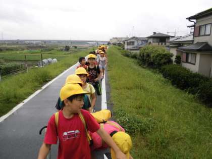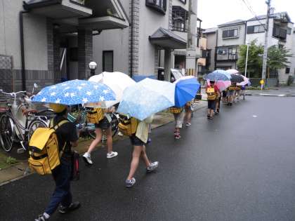 傘をさしての移動でしたが,しっかり並んで歩いて行きました。