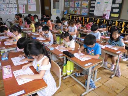 「先生,次何するの?」「カタカナ?」。みんなの心はもう次の学習にいっていますが,もうしばらくはひらがなの復習をします。
