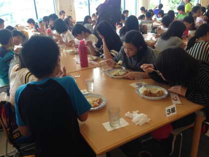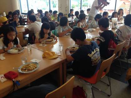 歩きまわってお腹ぺこぺこなのか,無言で頬張っています!