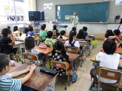 今日は,月1回の図書ボランティアさんによる1・2年生への読み聞かせの日でした。