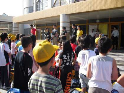 7月20日 晴天のもと,子どもたちが正門前に集合しました。