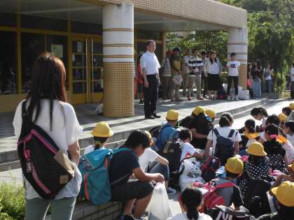 学校についてホッとしたのか,ちょっとお疲れの表情の子