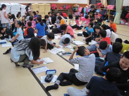 その後,グループごとに今日の振り返りを行い,全体で明日の活動に向けて話をしました。