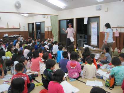 夜の集いです。今日の活動,そしてみさきの家での今までの活動を振り返る時間です。