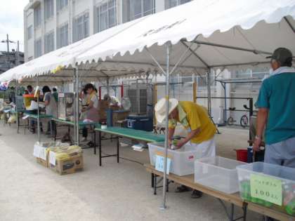 いろいろなお店も準備され,運動場の真ん中には盆踊りの櫓も建てられました。