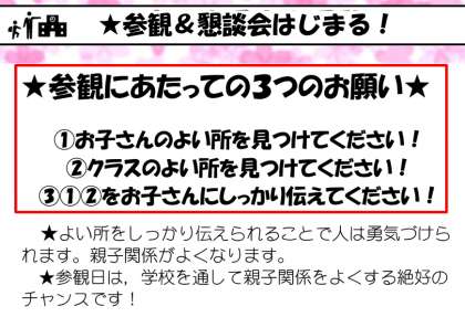 ★参観日は,学校を通して親子関係をよくする絶好のチャンスです!