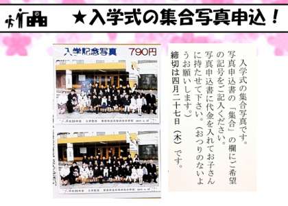 ★入学式の集合写真申込!