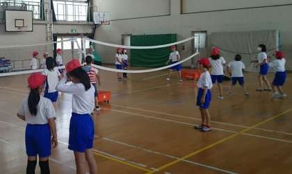 5年生では体育科の学習で「ソフトバレーボール」に取り組んでいます。
