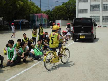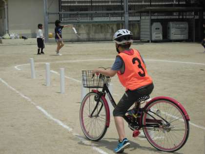 4年生の総合の学習で自転車教室に参加しました。普段意識していない交通のルールを警察の方に教えてもらい安全な自転車の運転を学ぶことができました。今日学んだことを生かし事故のない生活を送ってほしいと思います。