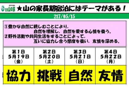 山の家長期宿泊には,毎日,ひとつずつのテーマがあります!