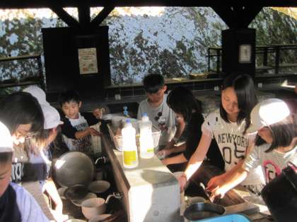 食事が終わると、後片付けです。