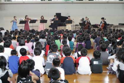 続いて行われた音楽鑑賞会では,8人の演奏家によるすばらしい生演奏を聴かせていただく事ができました。「結婚行進曲」に始まり,ペールギュントの「朝」,ビバルディの四季より「春」の部分などクラシックの名曲を楽しませていただきました。