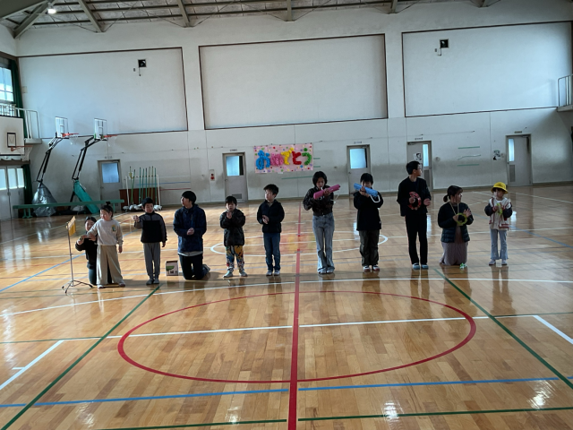 「ひまわりの約束」という曲の合奏をしました。鍵盤ハーモニカやタンバリン、カスタネットなど、みんなが自分の役割をしっかり果たしてすてきな演奏をすることができました。