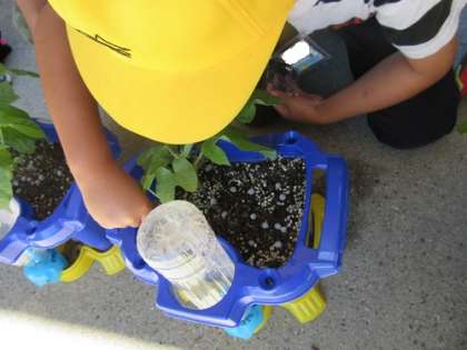 毎日お水をあげて大切に育てているアサガオが大きくなっています。