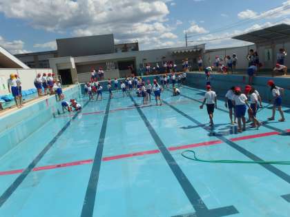 昨日の5・6時間目に6年生全員でプール清掃をしました。