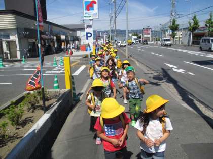 今日は町探検へ行きました。2クラス合同で,町探検に出発です!