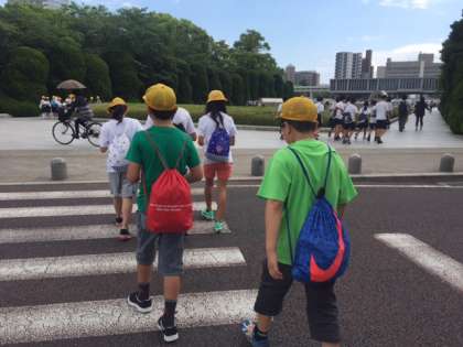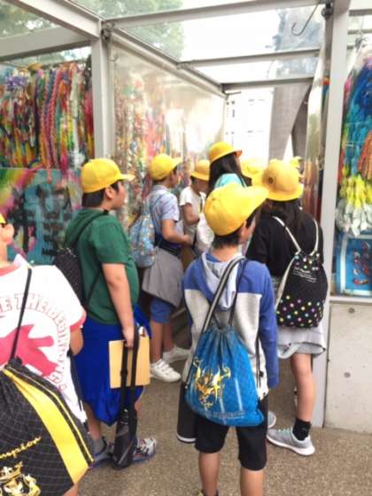 しおりを見ながら平和記念公園の中をグループで散策しました。