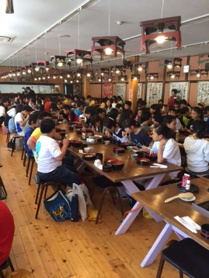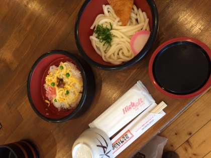 散策が終わり,うどん学校でうどんとちらし寿司をいただきました。